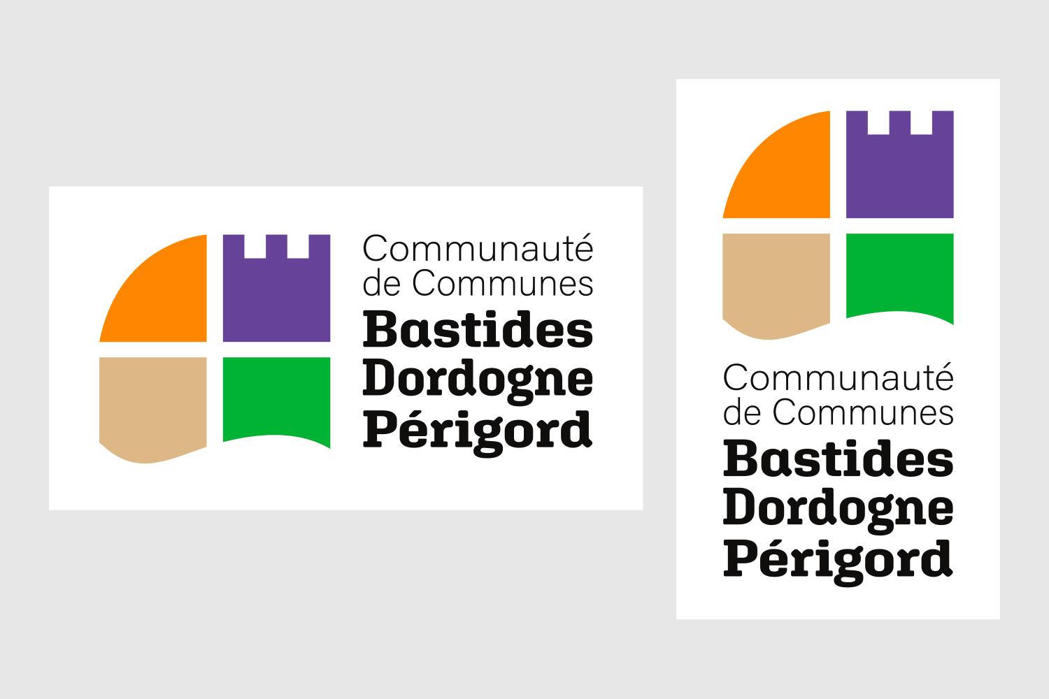 Tout a commencé au tournant du mandat 2020/2026, avec une mission fondatrice : refondre l’identité visuelle de la CCBDP, à commencer par son blason. L’enjeu n’était pas anodin — il s’agissait de doter une institution de 47 communes d’un signe durable, lisible, porteur de sens. Laure Dupleix a ancré le travail dans l’héritage historique et géographique du territoire. Le nouveau blason s’articule autour de la structure géométrique parfaite de la bastide — la « carra », ce plan orthogonal qui organise ces villes fondées au Moyen-Âge — traduite en quatre carrés qui constituent le cœur du logotype.