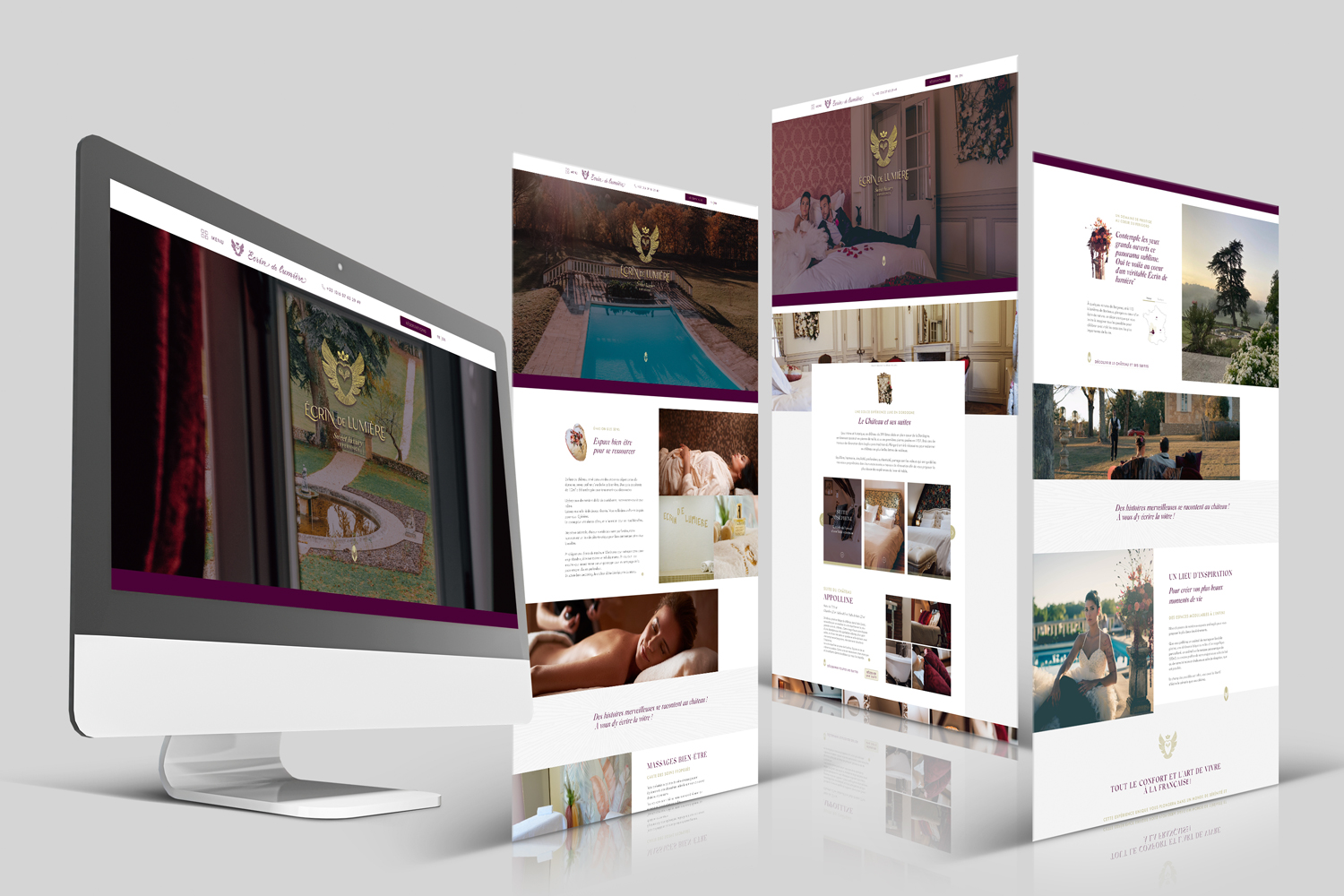 C’est ici qu’intervient une dimension souvent sous-estimée dans les projets web : sans matière visuelle d’exception, le plus beau des sites reste vide. Pour Écrin de Lumière, il était impensable de travailler avec des visuels quelconques. Nicolas Renault, de la société Spicy Motion — membre du collectif Woody spécialisé en production audiovisuelle — a pris en charge l’ensemble des prises de vue photographiques du château : les cinq suites, chacune avec son univers propre (la suite Joséphine et ses bleus impériaux, l’Apolline et son fuchsia audacieux, la Plume aux matières nobles et aux tons apaisants, la Lucie baroque et mystique, la Flore baignée de lumière et de couleurs végétales), les espaces communs, les extérieurs, la piscine, le parc.