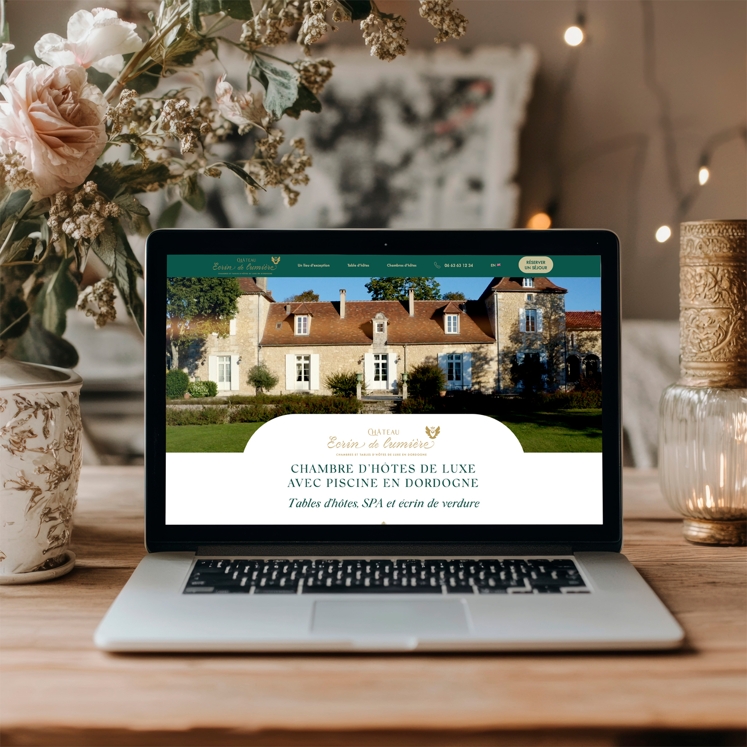 Il y a des projets où l’excellence du lieu impose l’excellence du travail. Le Château Écrin de Lumière, niché au cœur du Périgord Pourpre sur 25 hectares de nature préservée, est de ceux-là. Chartreuse du XVIIIème siècle entièrement rénovée, mobilier chiné auprès des antiquaires, suites aux univers singuliers et envoûtants, cuisine de table d’hôtes élaborée à partir des produits du jardin et du terroir local — Christophe Brezac, son propriétaire, a mis des années à construire quelque chose d’unique. Notre mission était simple à énoncer, exigeante à tenir : en être à la hauteur, de bout en bout.