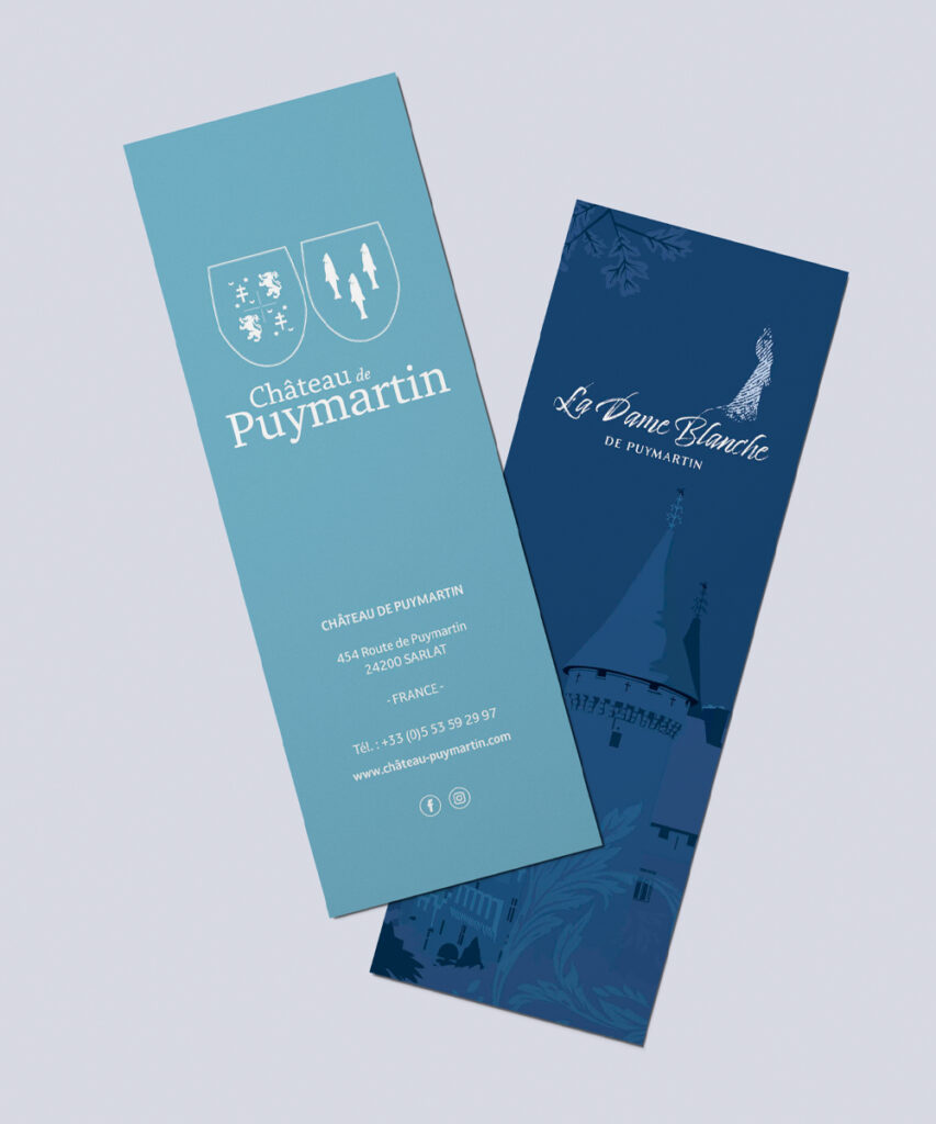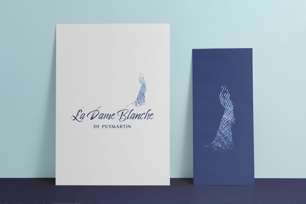 C’est dans cet esprit qu’a été créée une marque à part entière « La Dame Blanche de Puymartin ». Son identité graphique traduit cette même ambiguïté : une silhouette à peine esquissée, une empreinte, une trace, reliée à son nom par un simple fil. Autant d’éléments qui évoquent la fragilité du récit, sa reconstruction progressive, et ce que l’on effleure sans jamais vraiment saisir.